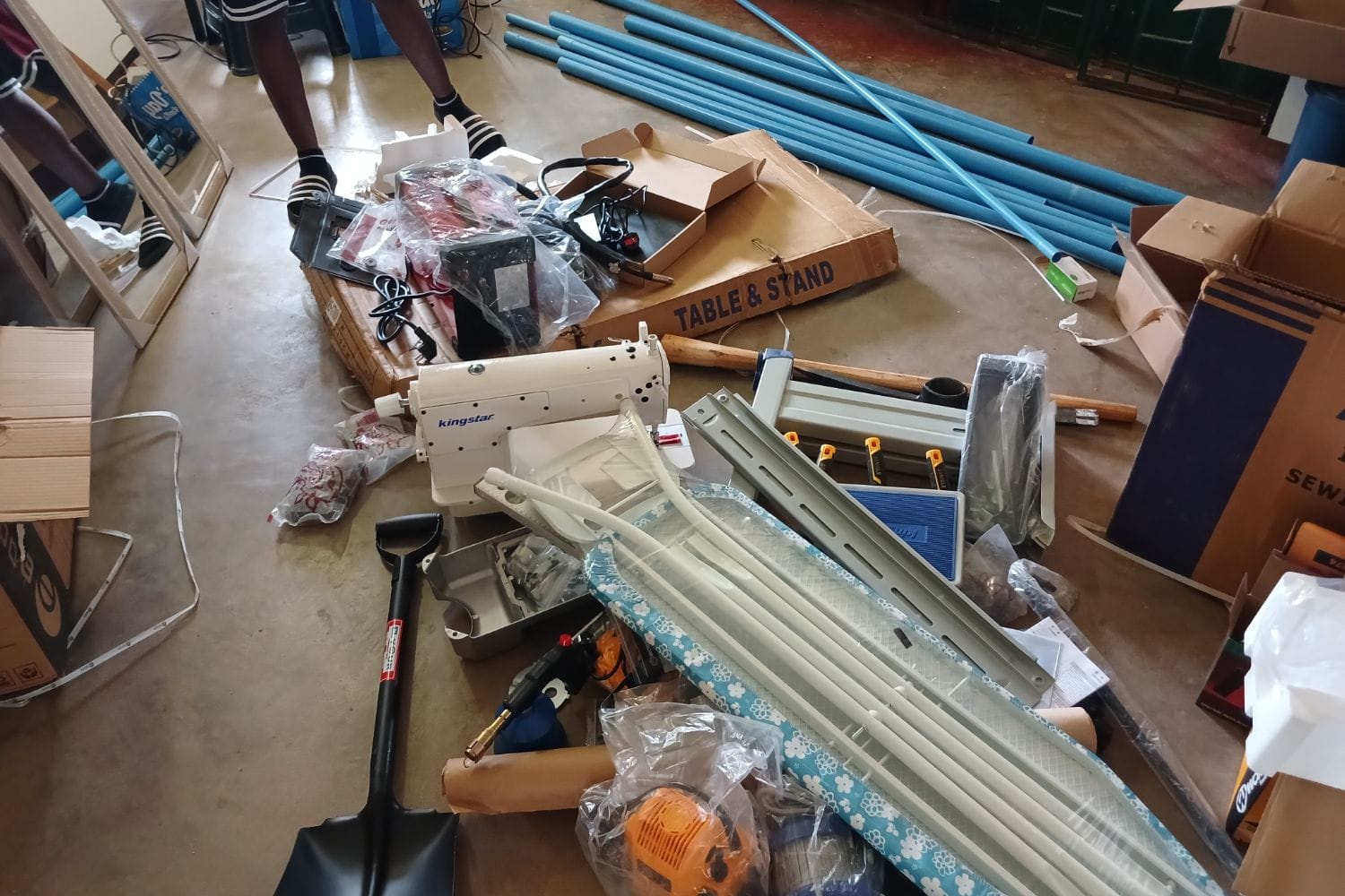 We were able to purchase and deliver new tools and materials to eight departments: Cosmetology, Garment Making, Welding, Motor Vehicle Mechanics, Carpentry and Joinery, Brick and Block Laying, Plumbing and Drain Laying, and Computers. Everything has been registered and safely stored in our main storeroom, ready for use.